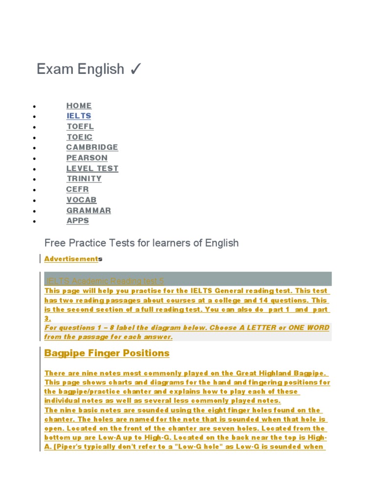 Exam English Pdf International English Language Testing System Finger